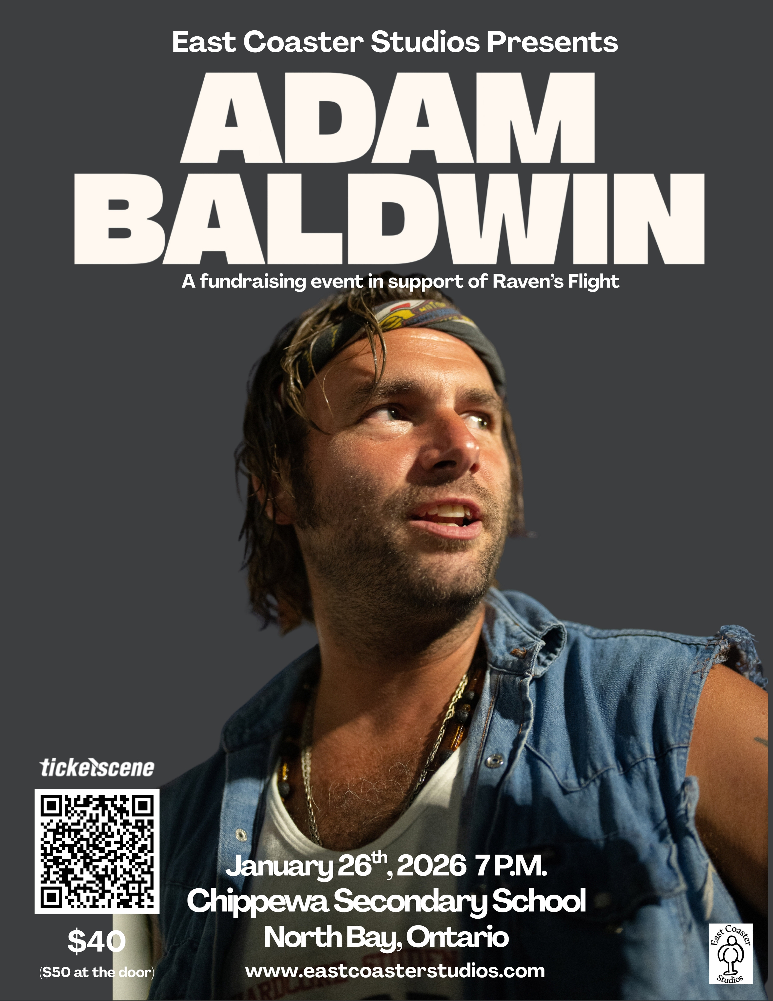 In a surprise last minute addition to the concert series Adam Baldwin will make his way to North Bay to perform at Chippewa Secondary School in support of Raven’s Flight, a fundraising initiative to support the return of senior football at Chippewa Secondary School.
