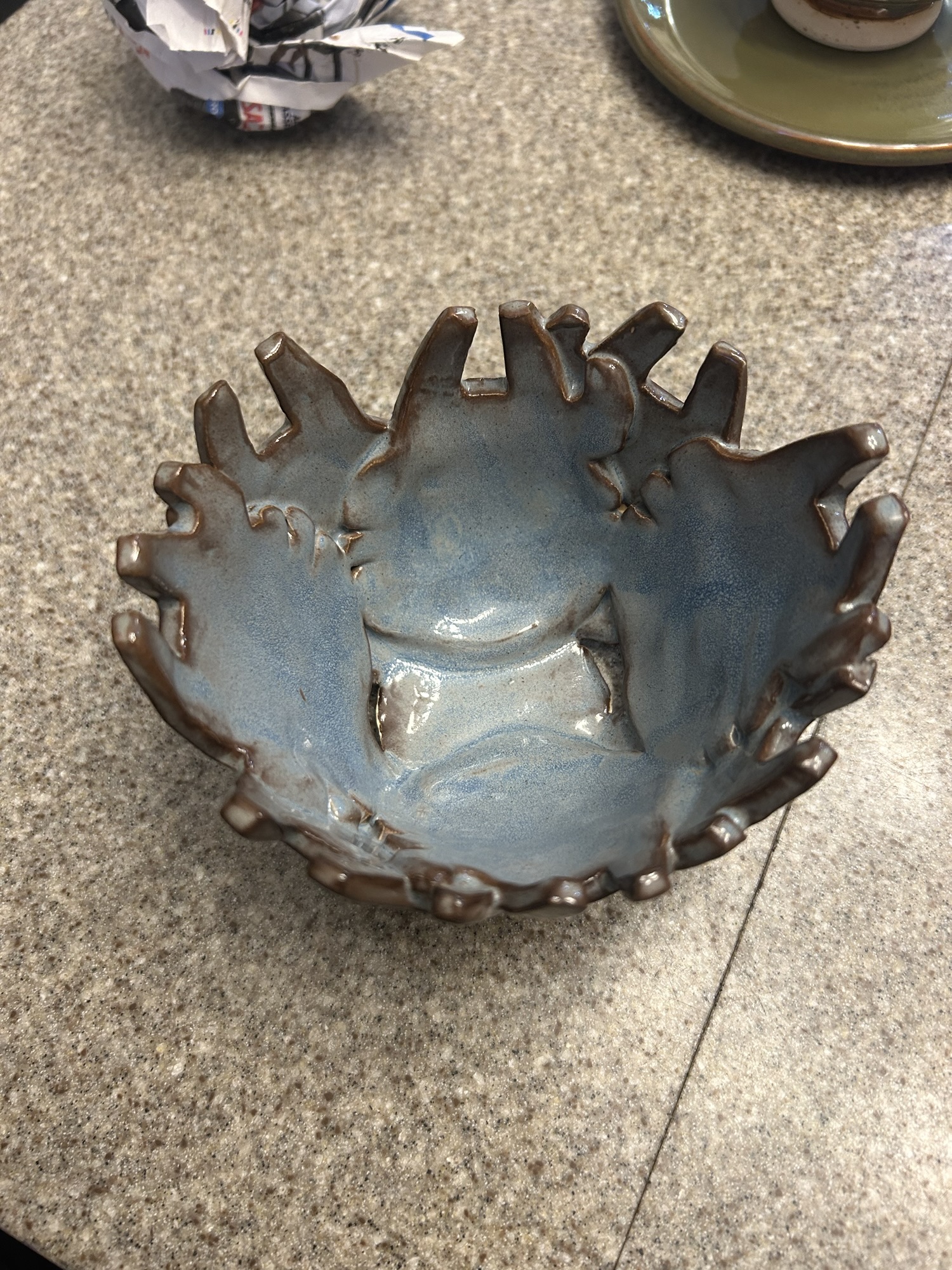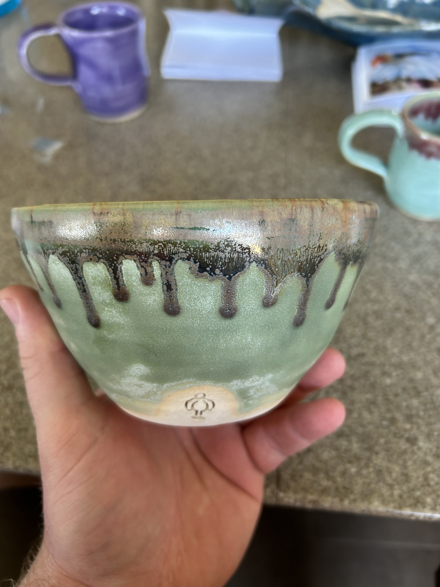 A couple of years after beginning painting I took a handbuilding class in pottery. I loved it and was convinced by my instructor to join the potter’s guild in North Bay. I was hooked right away. I love watching things emerging from clay. I like creating. I make things that I like and think are fun and if somebody else likes them too then that’s a bonus.